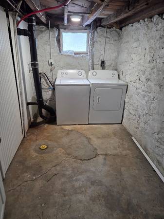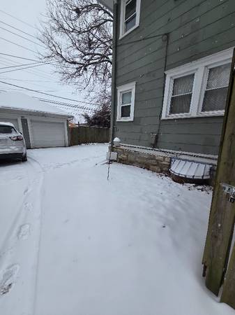 Upstairs unit, 2 large bedrooms, 1 bathroom, large living amd dining area, recently remodeled kitchen, Google Fiber ready, with 1 car garage and washer and dryer in the basement. Fridge, stove, and disposal included.