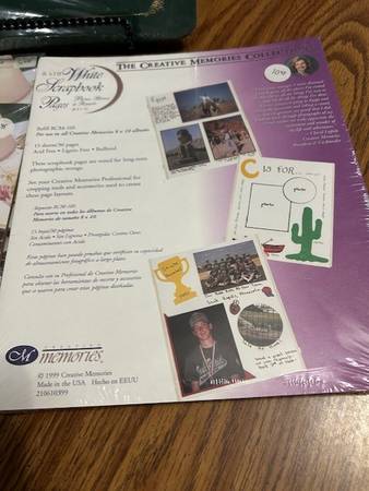 New - Creative Memories 8x10 "Evergreen" Album which includes 15 sheets/30 pages plus 2 new packages of 8x10 page protectors (16 in each) & 1 new package of 8x10 white pages (15 sheets/30 pages). Comes from a smoke-free / pet-free home. Porch pickup. Cash or Venmo. Email or text.