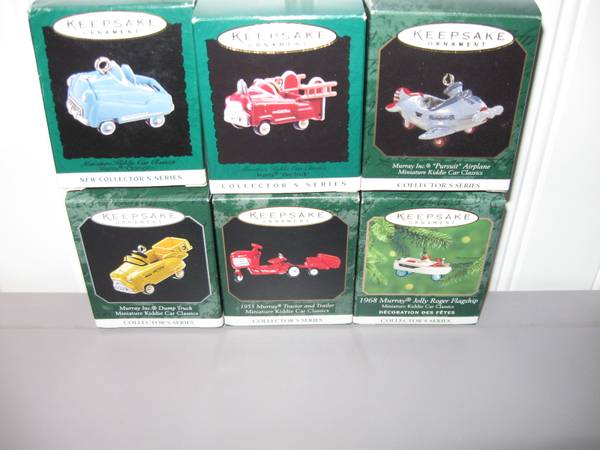 Large assortment of Hallmark Christmas ornaments, 79 pieces ranging from 1976 to 2016. Some vintage 70's pieces without boxes purchased at Hallmark employee sale. Some first in series - 2016 Beautiful Birdhouse, 1994 Murray Champion Kiddie Car Classics, 1998 Steelcraft Auburn Miniature Kiddie Car Classics. Complete 10 year Crayola series from 1989 to 1998. $200.00 obo for all 79 pieces. Meet and pick up in Oak Grove, MO. Cash only.