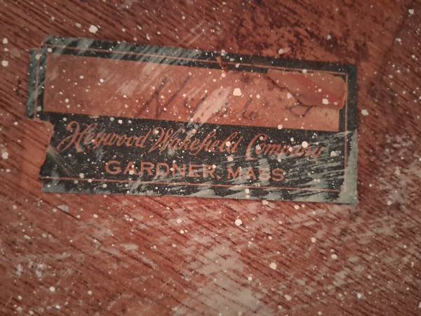 This is a beautiful round wicker table and 4 matching chairs by Heywood-Wakefield, founded in 1921 in Massachusetts. The chairs and table legs are painted white wicker. The chair seats are caned. The top of the table is finished oak. The table top measures 42" across and it stands about 30" high. The chair backs are 36" high. These pieces are very heavy and all are in excellent condition. Gold cushions are included. This set has stood the test of time and has years of life left. I have another set like this with chairs that have lower backs. I also have a third table with 4 new wicker chairs.