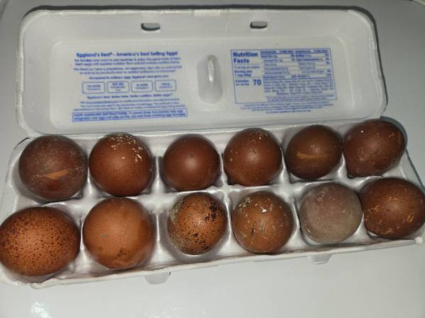 These are a line I've been working on to get the elusive #9 dark egg. These pics are taken with and without flash and no alterations other than cropping to get just the eggs. I suck at taking pics, but these look pretty much like what I get at the beginning of laying season. They do lighten as the season progresses.