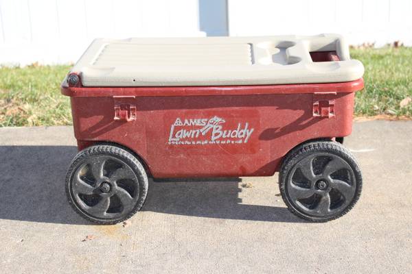 One used Ames Lawn Buddy Poly Lawn Cart. Includes plastic lift-out tray for storage of smaller hand tools or other gardening items. Lid lifts back 180 degrees and stays open on built-in hinges; has built in seat and two spots to set two drinks. Has attachments on long sides of cart to store some sort of tools; not included. Includes handle for lifting lid and transporting to new destination. I would attach a rope or craft a handle to use to pull it around. Needs to be washed out; very usable condition. Sells as high as $86.92 new with free shipping on eBay. Actual dimensions not available at this time. Asking $40.00 cash only please. No warranty, implied or otherwise, on ladder. Item sold as/is. Call before 8:00 pm for information. Can be shown during daylight hours by appointment only.