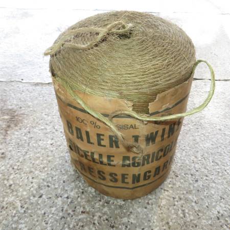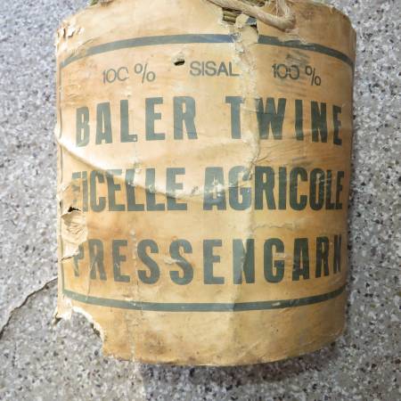 Vintage Baler Twine Ficelle Agricole Pressengarn, SISAL 100%. The twine is not rotted, pulled on it and would not break. Perfect for your projects around the house or tying stuff down in your car/truck. The wrapping is a bit torn up, however still readable from many years of sitting on a shelf in the garage. Great for the collector or put to use. This is New Old Stock / NOS. Selling for a friend.