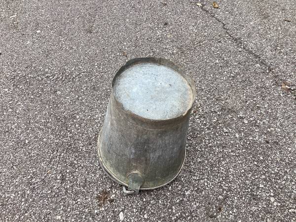 Vtg Heavy Steel Galvanized Bucket $20 Shows some cosmetic wear from age and use. No holes or dents. 13” diameter at top and is 12.5” high. Has some markings, but can’t read them. Please call or text...