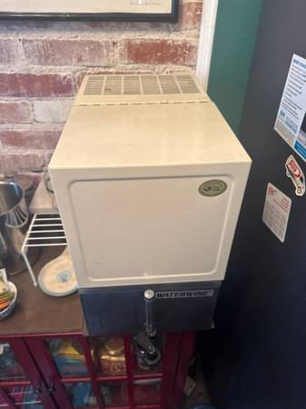 Water distiller. Connects to waterline. We connected it to the waterline to from refrigerator.