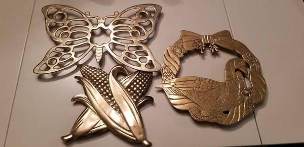 These are solid brass, look good as décor when not in use. Goose hot plate is apx. 8.5"R, Corn hot plate is apx. 8.25" x 8.25". $20.00 apiece obo. Cash or PAYPAL