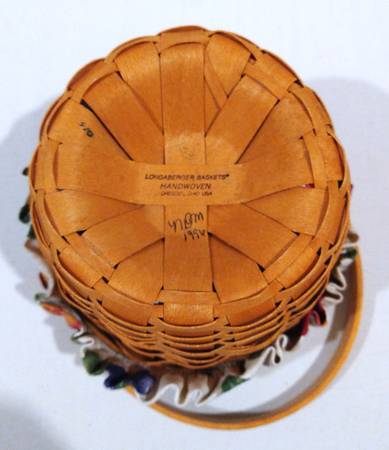 1996 Retired Longaberger small Fruit basket, protector and Fruit Medley liner. Makes a great gift! Excellent condition--no scratches, broken reeds, or cracks. Basket measures 6.5" in diameter, 5" tall and then 10" tall from raised handle to bottom of basket. Smoke and pet free home. Please see my other posts