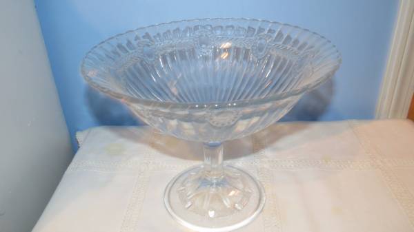 This is a beautiful vintage bowl w/stem. Will look great on your table whether you use it for food or decor. In excellent/clean condition. Beautiful design. Stands 8 1/2" tall - 10 1/2" diameter. No chips, nicks, or breaks. Comes from a smoke-free / pet-free home. Cash or Venmo. Email or text.