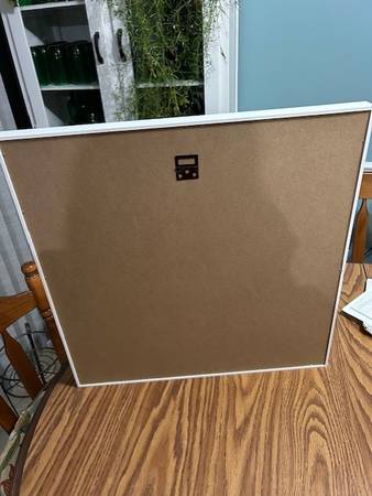 In like-new/clean condition - a cute rustic photo or card display for the wall. Dis- tressed white wood-grain pattern and a white frame. 20" x 20". Has 3 cords stretched across it with small clothespins plus 6 white magnets. Can be used in various rooms. Has attachment on the back for hanging. Comes from a smoke-free / pet-free home. Porch pickup. Cash or Venmo. Email or text.