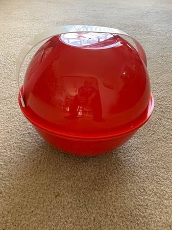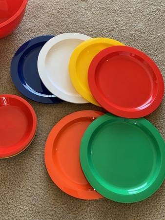 In like-new/clean condition - a vintage Ingrid Chicago party ball picnic set. 1984. Includes 27 pieces ... 6 - 9" plates, 6 - 8.5" plates, 6 - 6.75" plates, 6 cups, 1 tray, two bowls. All plastic. Primary colors. They all fit inside the red plastic party ball. Nothing wrong with them. Easy carrying handle. Comes from a smoke-free / pet-free home. Porch pickup. Cash or Venmo. Email or text.