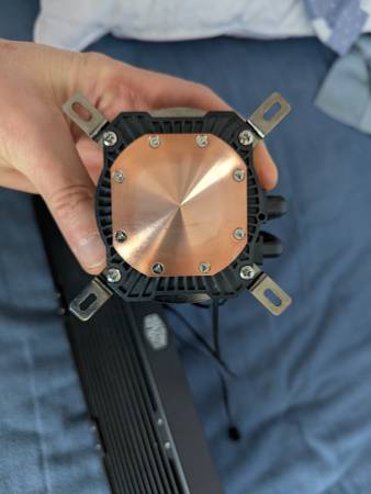This is a Cooler master "Master liquid" aio CPU Cooler. It shipped missing one screw. All other accessories are included. Had been used until recently switched back to air cooling as I sold a lot of performance parts parts and no longer needed this. Some of the adhesive has come off from the back plate during removal. Box included.