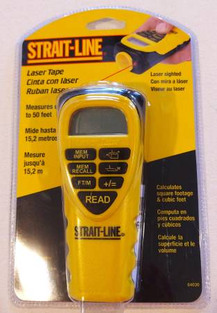 Makes a great gift! Brand new, in original sealed package-never used. Measures up to 50 ft. Uses one 9 volt battery. Please see my other posts